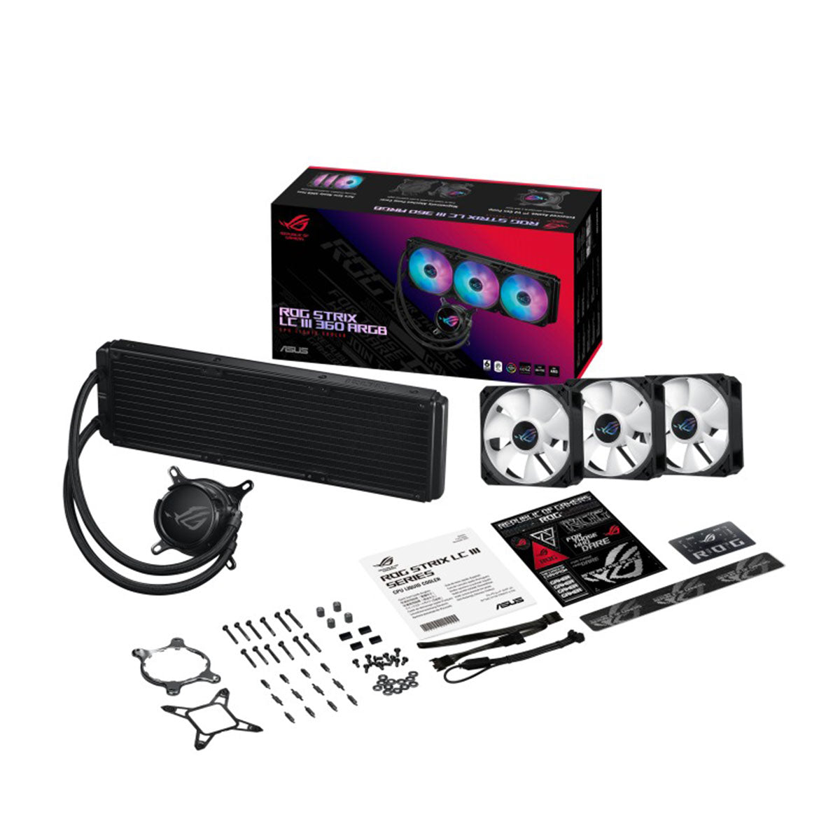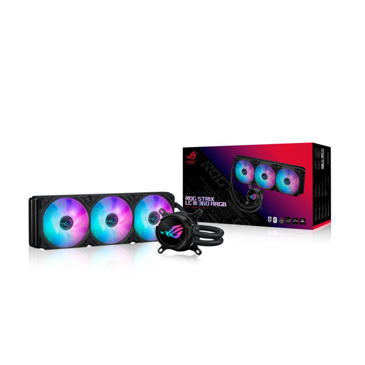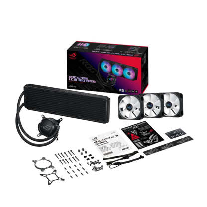 Achieve optimal performance and stunning aesthetics with the ROG Strix LC III 360 ARGB, featuring the latest generation Asetek’s new Gen7 v2 pump and ROG ARGB radiator fans. Effortlessly tackle the heat generated by AMD Ryzen™ and Intel® Core™ processors to unleash limitless power. Enjoy enhanced installation flexibility with a 360° rotatable water block that accommodates various mounting options. Explore a spectrum of Aura lighting modes to elevate the visual appeal of your gaming build. And embrace the perfect blend of efficiency and exquisite design for an